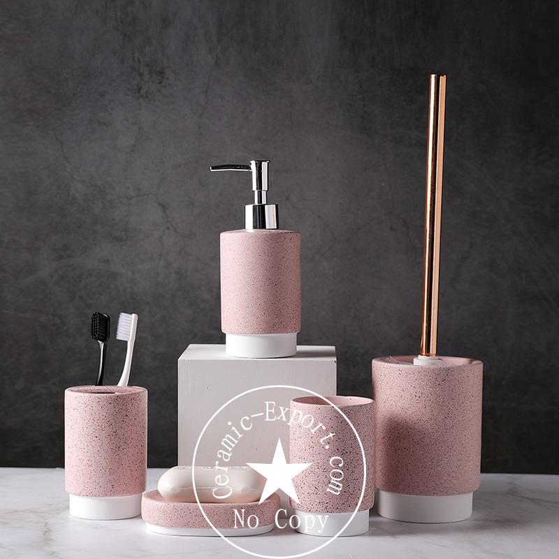 • Product description: Wholesale Ceramic Bathroom Accessories Set White Dots Pink Bath Accessory Set - Find QualitySoap Pump Dispenser Toothbrush Holder Tumbler Soap Dish on Ceramic-Export.com