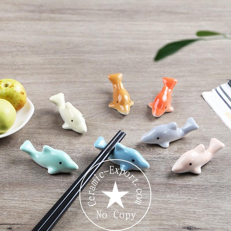 Wholesale Ceramic Dolphin Chopstick Holder Solid Color