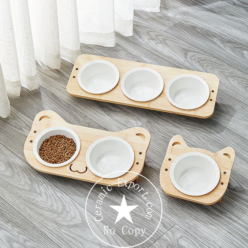 Wholesale Ceramic Pet Bowl Cat Bowls Feeder With Bamboo Holder