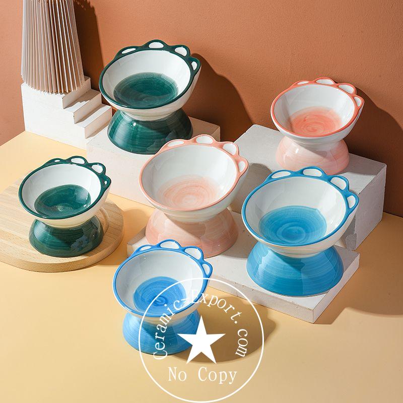 Wholesale Ceramic Pet Bowls Cat Dog Bowls Feeder Paw Pattern