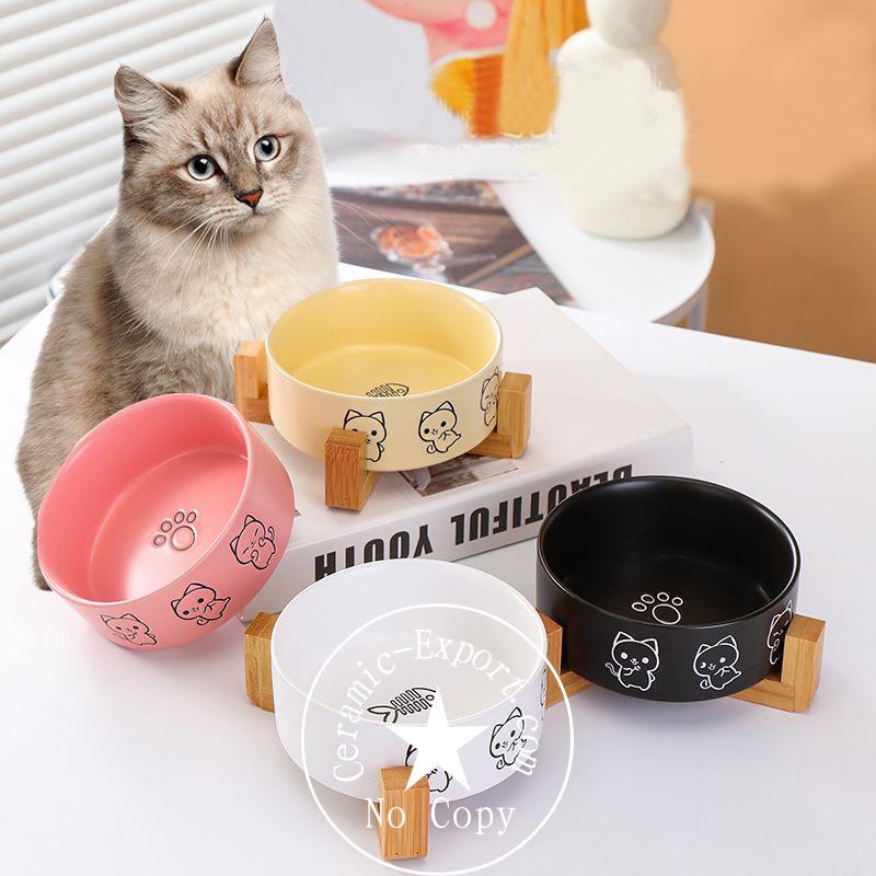 Wholesale Ceramic Pet Cat Round Bowls Feeder Silk Print