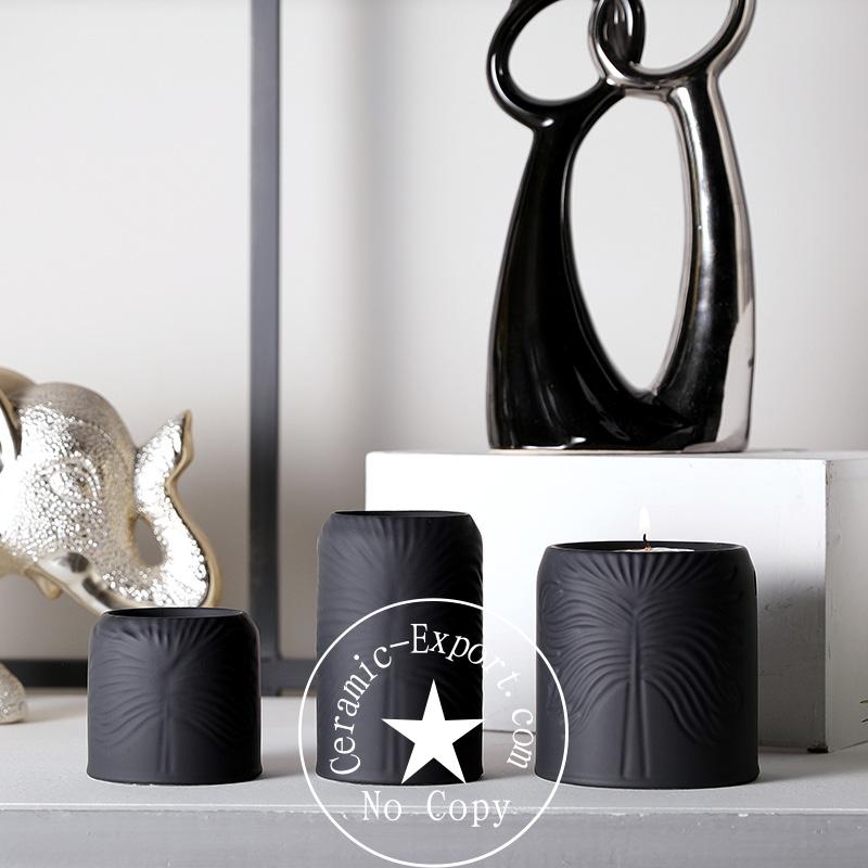 Wholesale Custom Ceramic Intaglio Black Flower Candle Vessel