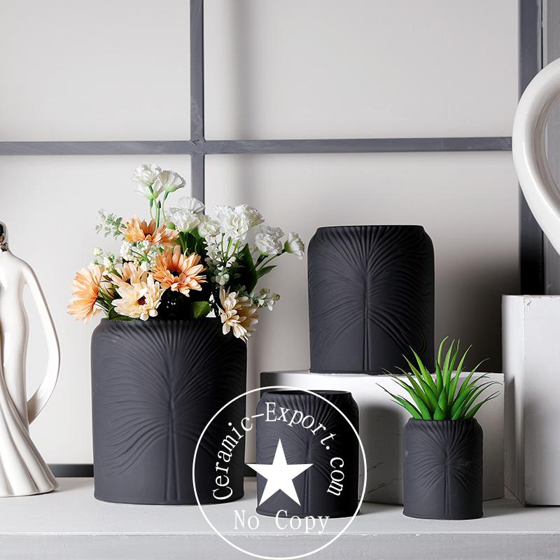 Wholesale Custom Ceramic Pot Matt Black Flower Vase