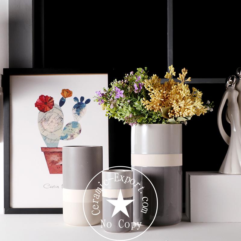 Wholesale Custom Ceramic Pot Stripe Color Flower Vase
