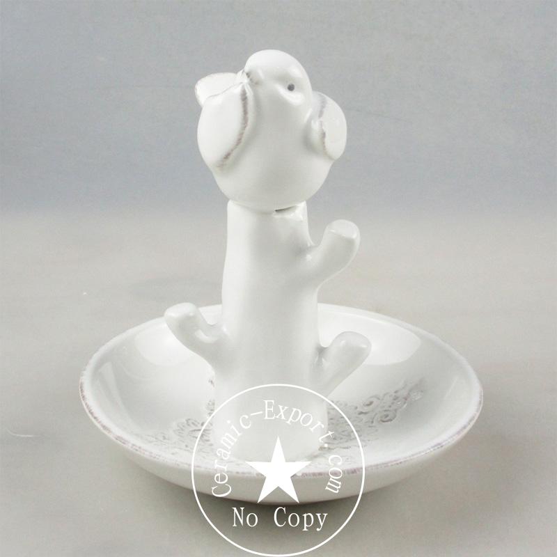Eco Friendly Wholesale Bird On Branch Ceramic Jewelry Trinket Holder Own Design