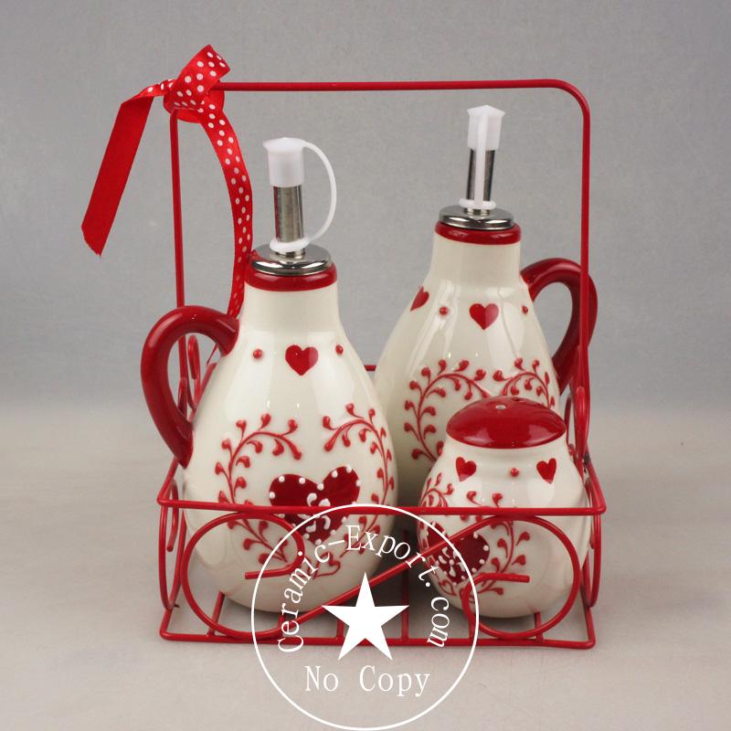 Eco Friendly Valentine Ceramic Set 4 Oil Bottle Salt N Pepper Own Design